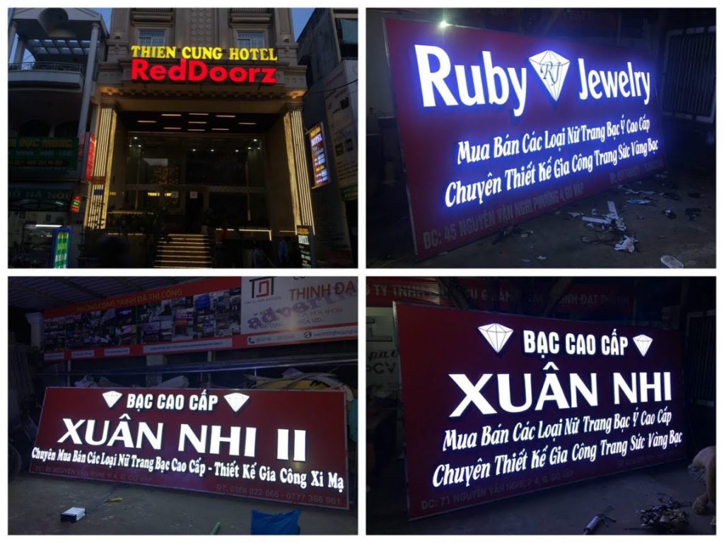 Ưu tiên bảng hộp đèn mica nổi hoặc alu cao cấp.